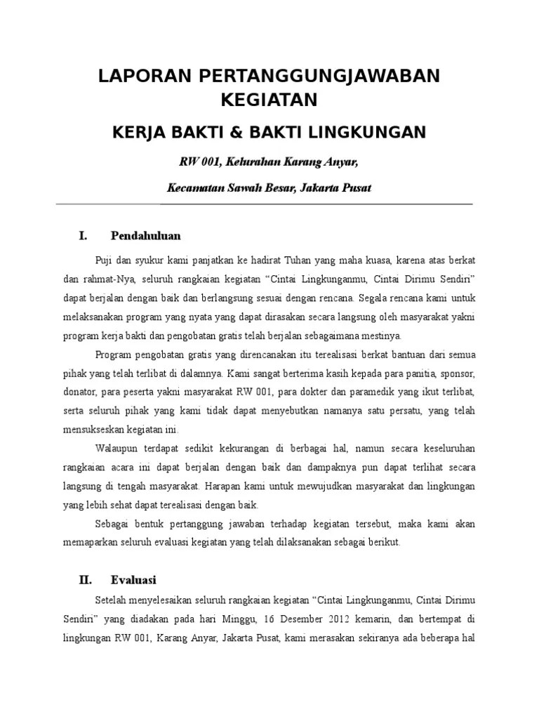 Laporan hasil wawancara hari / tanggal pelaksanaan : Proposal kerja bakti laporan hasil kerja bakti.docx laporan pertanggung jawaban kegiatan kerja bakti kerja bakti … contoh laporan . Mpai dengan penyusunan laporan kuliah kerja nyata. Di bawah ini contoh kerja sama di lingkungan masyarakat adalah … answer choices. Tujuan dari kegiatan ini adalah untuk menggali informasi lebih lanjut dan memperdalam pemahaman kami tentang berbagai hewan dan tumbuhan .